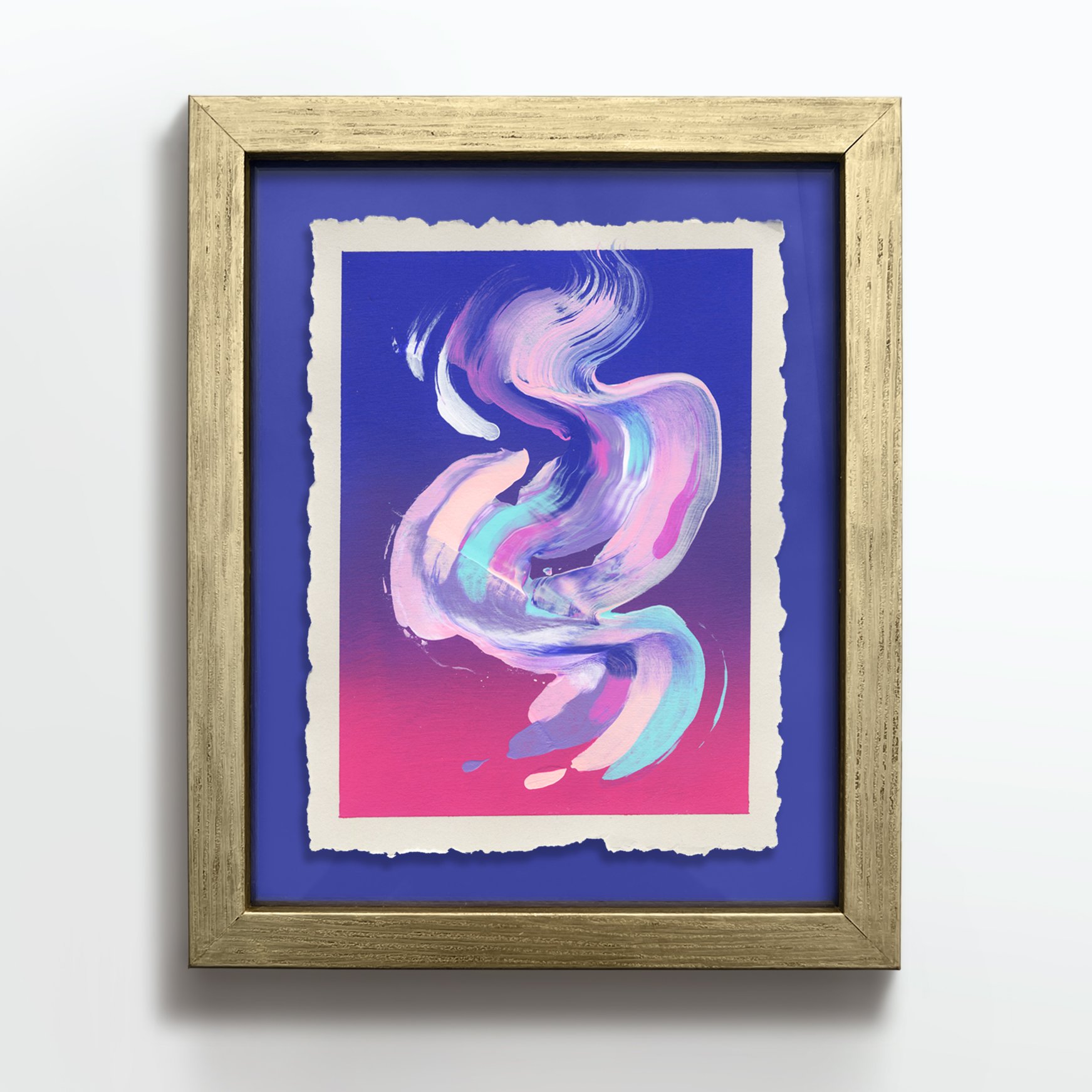 Original acrylic painting on Legion Stonehenge deckled edge paper. Initiated at an auspicious time (see images for more details). Comes in a hand painted, box frame.