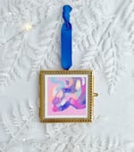 Original acrylic painting on paper in a laced edge, hanging photo frame. Can be hung on a wall year round or hung from a tree as an ornament.