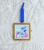 Original acrylic painting on paper in a laced edge, hanging photo frame. Can be hung on a wall year round or hung from a tree as an ornament.