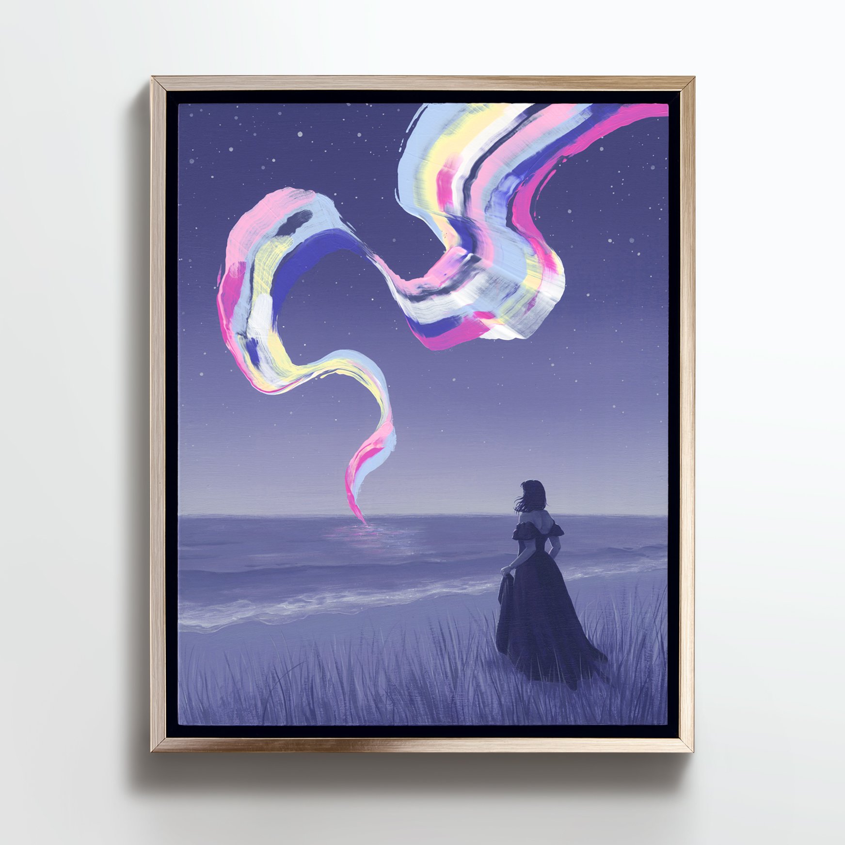 Original acrylic painting on cradled wood panel. Comes in a brushed gold, floater frame. Initiated at an auspicious time (see images for more details)